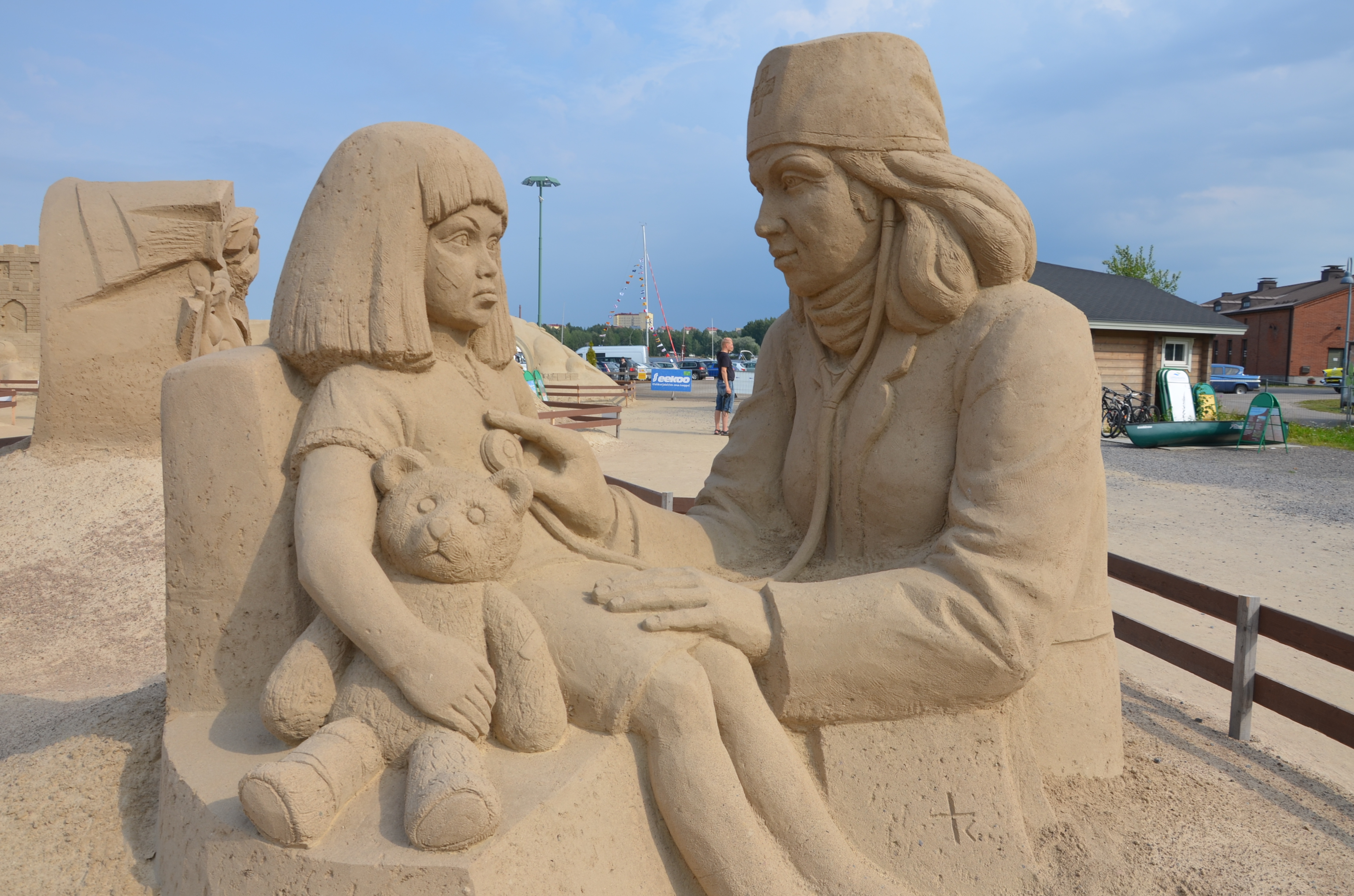Järgmisena asusime teele Lappeenranta. Käisime sealses rannarajoonis, kus toimuvad igal aastal liivaskulptuuride püstitamised. Näiteks 2008. aastal ehitatud skulptuuridele kulus 3 miljonit kilo liiva. Sellel aastal oli Hiekkalinna teemaks kangelased. Hiljem hüppasime tund aega ringi tiirutavale linnarongile, mis meid mööda linna sõidutas ja erinevaid vaatamisväärsusi tutvustas.