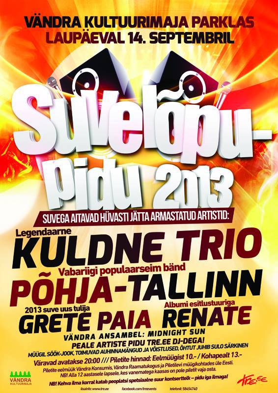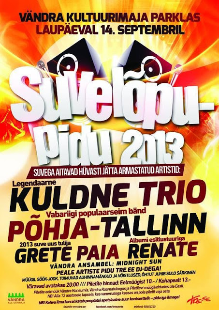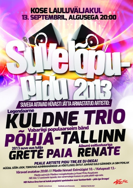 Ärge siis unustage, et reedel ja laupäeval on suured suve lõpupeod Kosel ja Vändras 🙂 Saadame koos suve ära! Kes piletit veel pole ostnud, siis seda saab teha siit: http://www.piletilevi.ee/est/piletid/muusika/klubi/?show=30696