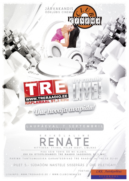 Laupäeval oli esinemine Cinemas. Läksin sinna juba enne pidu kohale, tegin proovi ja kella ühe ja kahe vahel esinesin. Tol päeval olin ma üldse päeva teises pooles nii väsinud, et peale esinemist viskasin kohe pikali. Koju sai aga alles hommikul kuue paiku. Järgmisel päeval magasin kella kaheni päeval, nii hilise kellaajani pole juba ammu maganud.