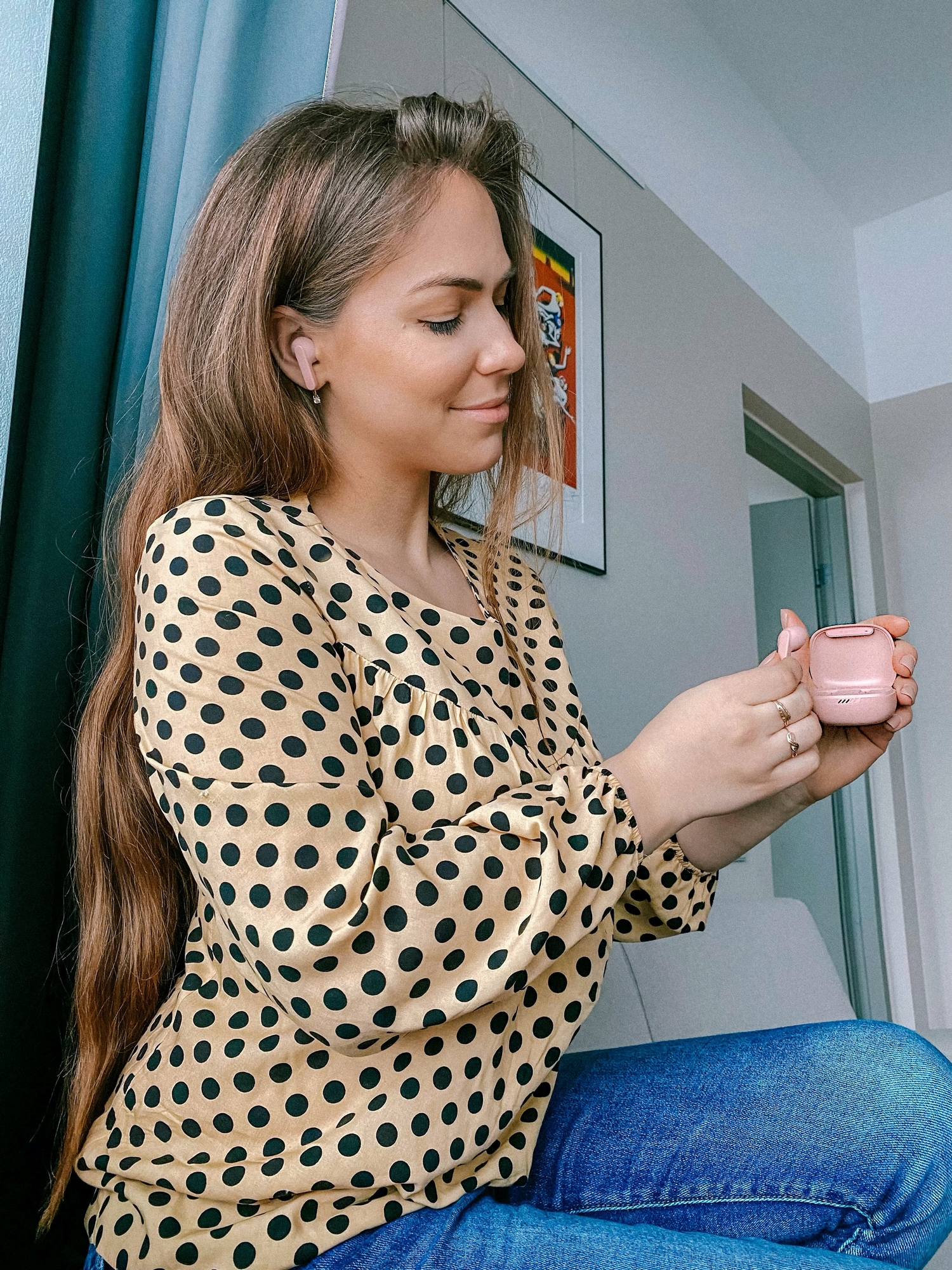 Üle ja ümber ei saa ma muidugi nende nunnust roosast värvusest, aga sellel konkreetsel mudelil on olemas veel ka musta, valget ja beeži varianti. Lisaks lugesin, aga pole katsetanud, et sellel mudelil on ka IPX4 veekindlus, mis siis inimkeeli peaks tähendama, et kõrvaklappe saab kasutada probleemideta ka õues tugevama vihmaga. Väga mugavalt saad kõrvaklappidest tulevat heli panna pausile kui ühe korra õrnalt “toksid” kõrvaklapi peale ning lisaks on tal ka funktsioone loo edasi kerimiseks ning helivaljususe reguleerimiseks. Samuti on nende klappide puhul eraldi välja toodud “kiire ühenduvus” ja seda ma tahaksin ka ise kindlasti välja tuua, sest eelmiste klappidega võrreldes näen tõesti, et kui varem pidi ikka vahepeal bluetoothi sisse-välja lülitama, et klapid üldse järele saaks, siis nende puhul võtan nad karbist, panen kõrva ja kui telefonis on eelnevalt juba bluetooth sees, siis sekundiga on ta ka juba ühendatud.